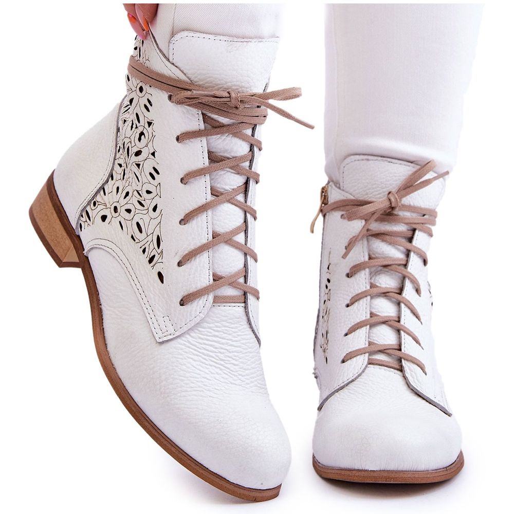 Női bőrbőr csizma Lewski cipő 3186 - Fehér borsó