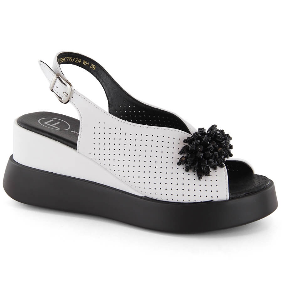 Részletek: Női bőr ékszandál gyöngyökkel, fehér Filippo DS6076