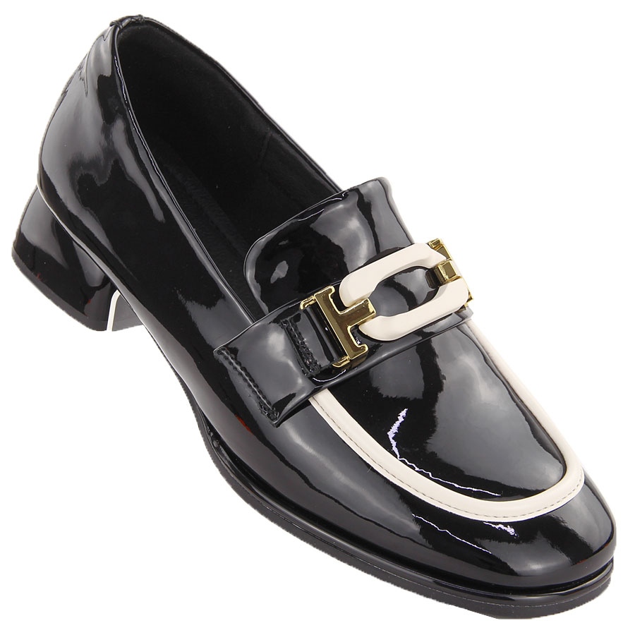 A lábbeli természetes, lakkozott bőrből készül, amely nemcsak rendkívül elegánsnak tűnik, hanem garantálja a tartósságot és a kényelmet is. A modellnek kerek orra és csúszó kapocs van, ami megkönnyíti a felhelyezést és a felszállást. További avant -garde -t kapnak egy finom láncnak, amely vonzza a megjelenést.