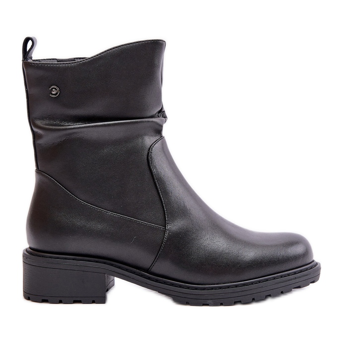 Részletek: Női bőr meleg bokacsizma ráncokkal, fekete Vinceza 66714