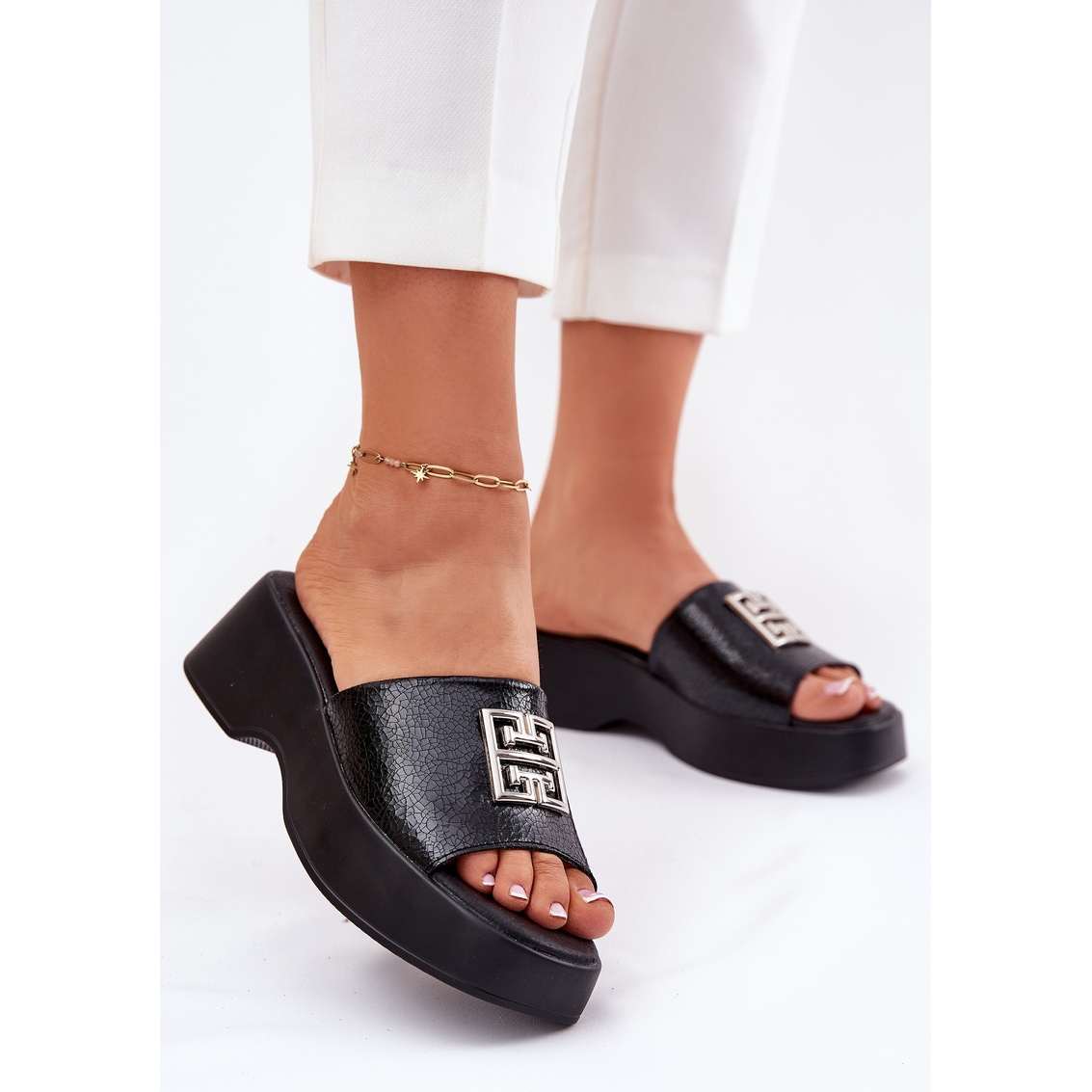 Vinceza Vinceza Női bőr papucs dekorációval VinZ 79526 fekete