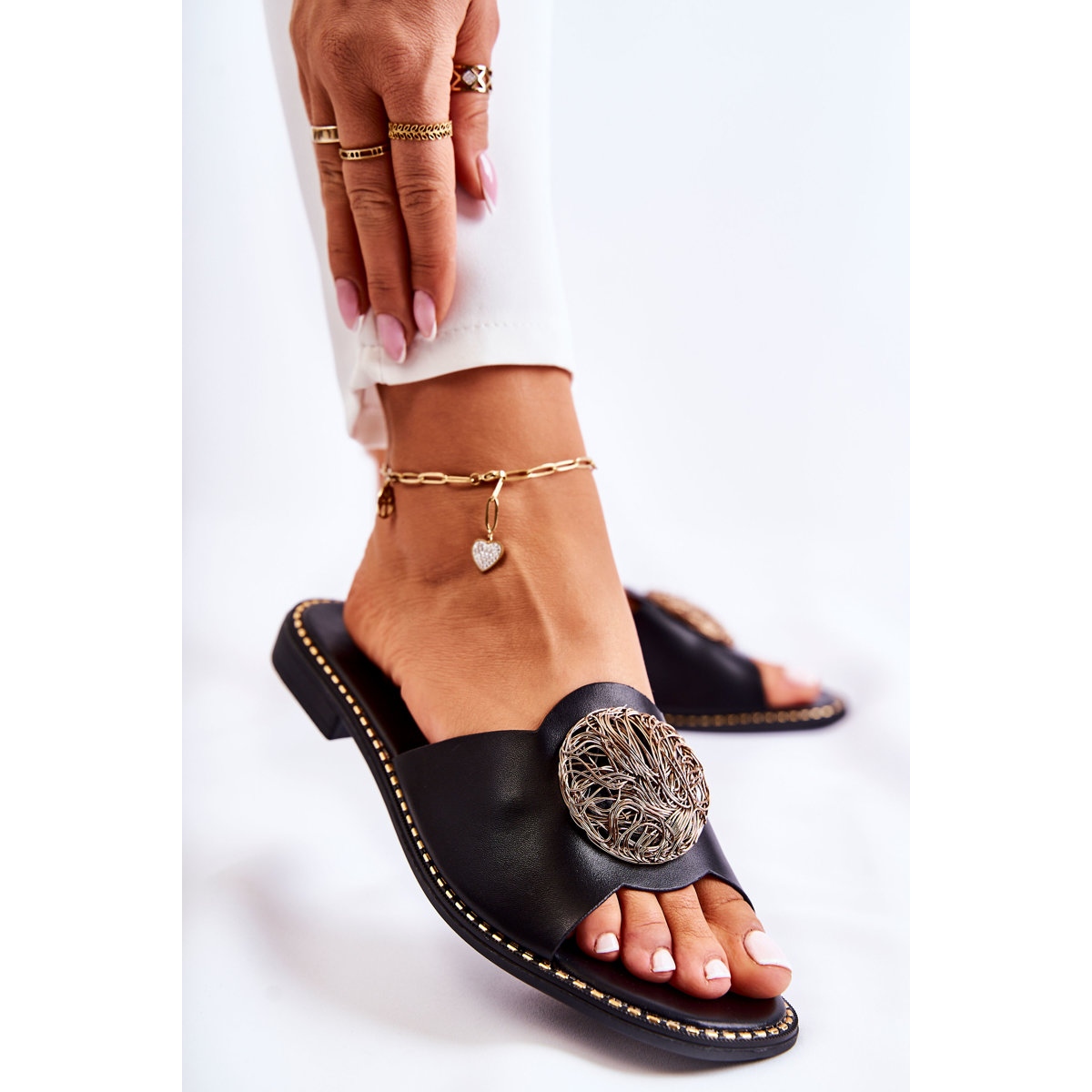 S.Barski S.Barski Női bőr papucs fekete Colene díszekkel