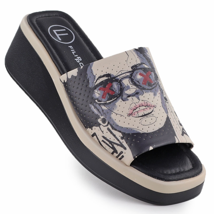 Részletek: Női bőr papucs nyomtatott bézs filippo dk6158