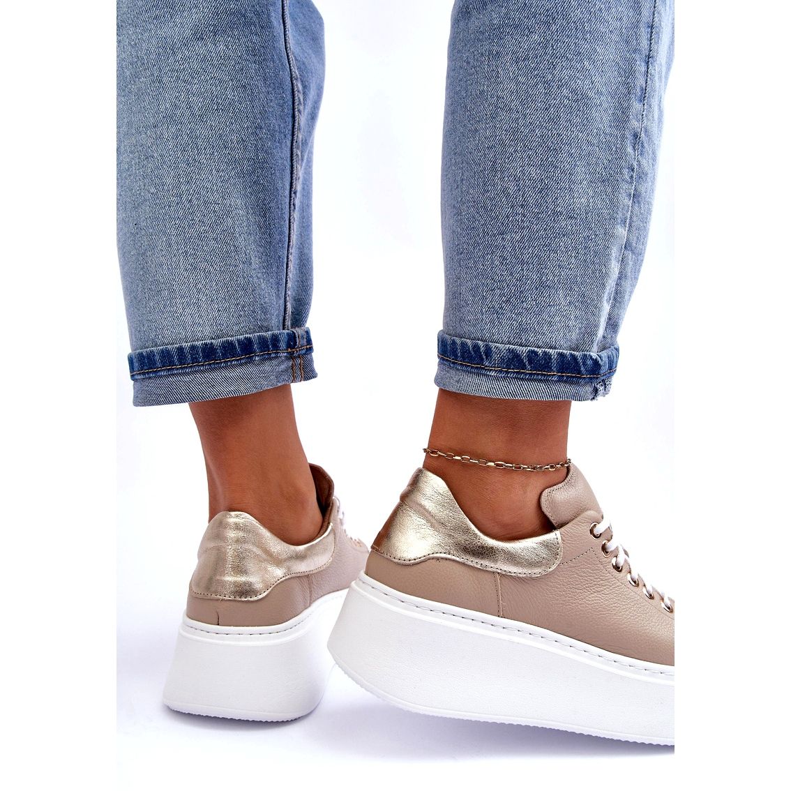 Részletek: Lemar Női bőr sportcipő a platformon bézs