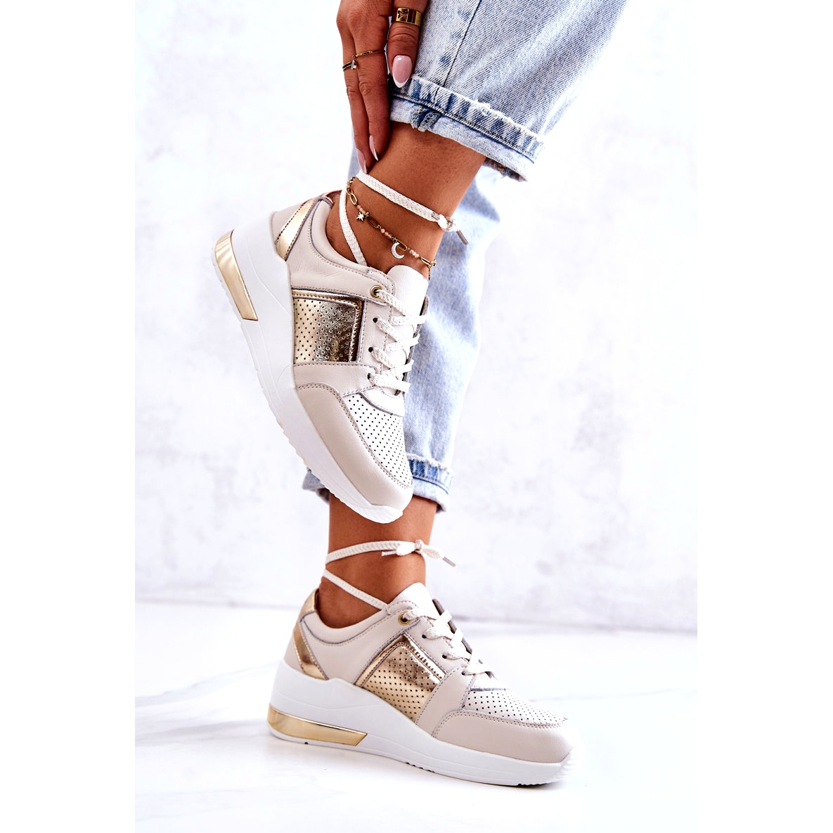 - Szín: bézs (bézs/arany) fehér talppal