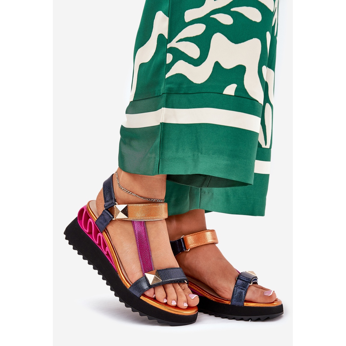 A gyakorlati tépőzáras rögzítés azt jelenti, hogy a felhelyezés és a levonás nagyon egyszerű, amelyet minden aktív nő minden bizonnyal meg fog értékelni. A kényelem viselése garantálja a bőrbetétet, amelynek köszönhetően a lábak egész nap jól érzik magukat, még a legnagyobb hőn is. Ezenkívül egy 7 cm -es magas ék és egy 2,5 cm -es magas platform biztosítja a stabilitást és a mozgás szabadságát, ami tökéletes választást jelent mind a napi sétákhoz, mind a kevésbé formális kimenetekhez.