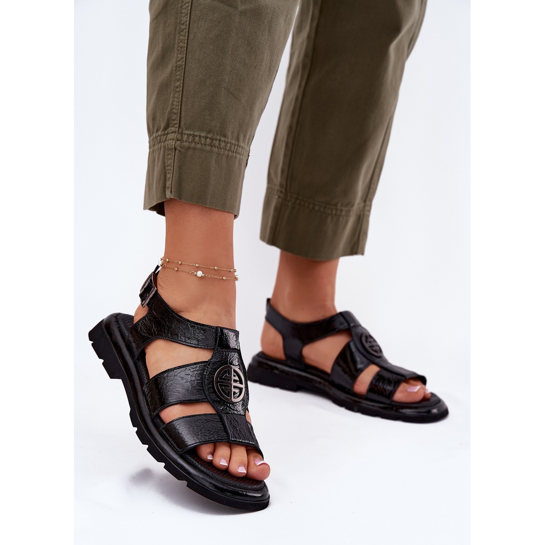 ARTIKER Női bőr szandál, dekoratív részletekkel lakni, Artiker 56C0691 fekete