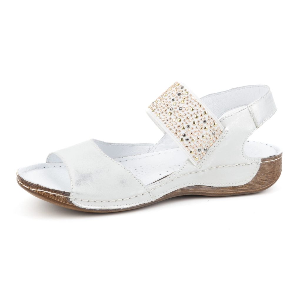 Női bőr szandál Olivier 0546 Ezüstben nagyszerű választás azoknak a nőknek, akik a divatos megjelenést és a vigasztalást akarják kombinálni. Kiváló minőségű természetes bőrből készül, mind a külső, mind a belső részén, garantálja a tartósságot és a kényelmet egész nap. Ezt a Lengyelországban készített, Olivier gyártó által készített modellt egy sportvágás jellemzi, amely tökéletesen illeszkedik a napi, alkalmi stílushoz.