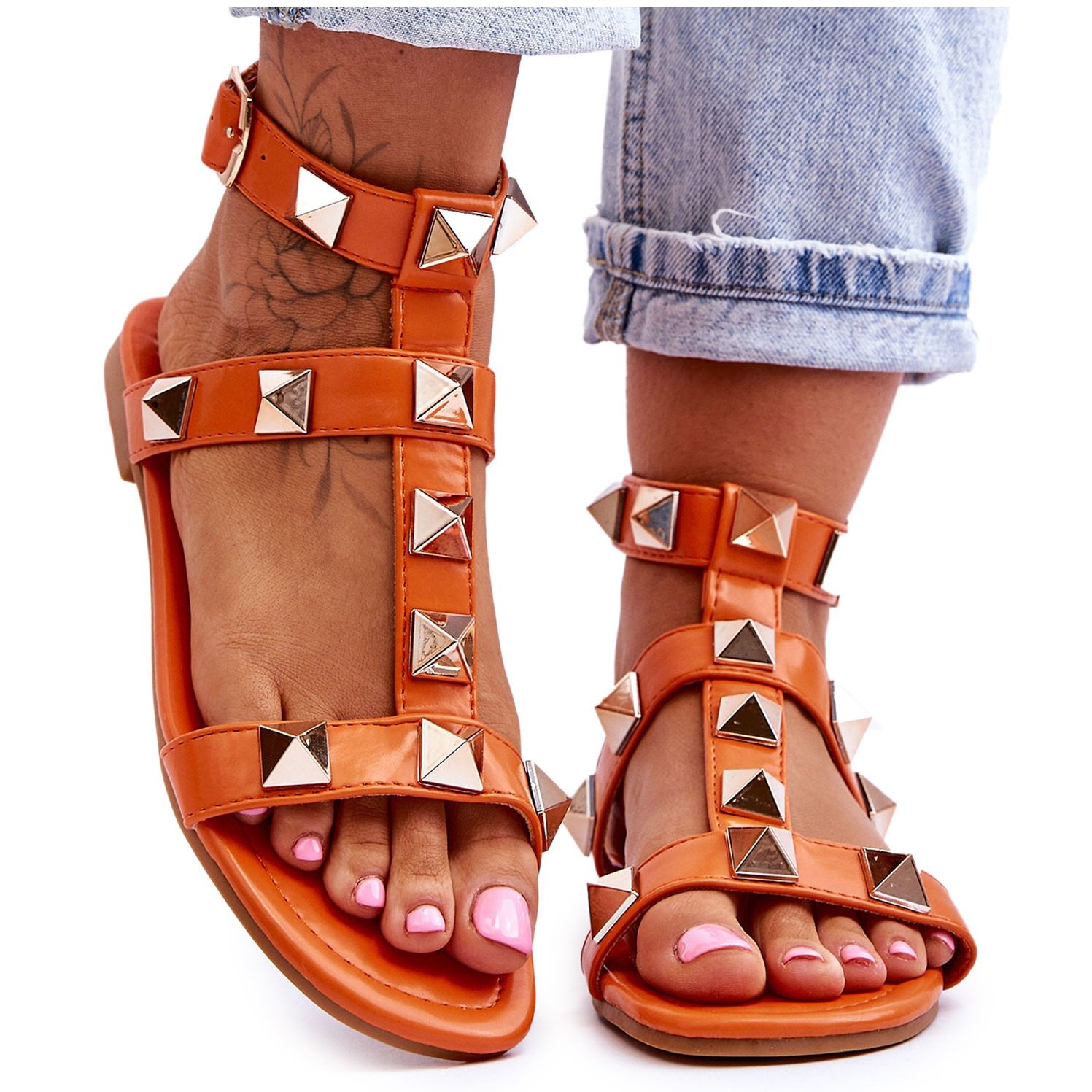 Részletek: Női bőr szandál nagy szegecsekkel Narancssárga Mishigan