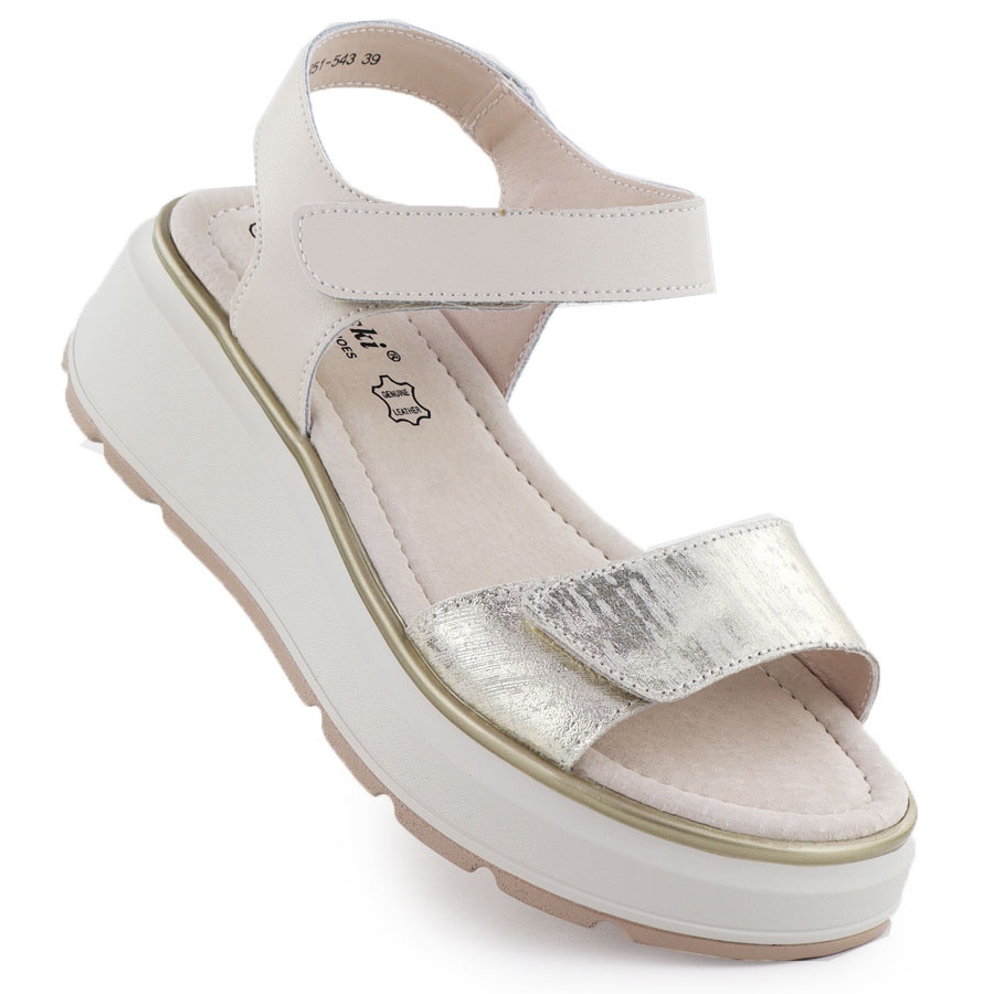 Részletek: S.Barski Női bőr szandál tépőzáras platformhoz Złote S. Barski LR51-543 aranysárga