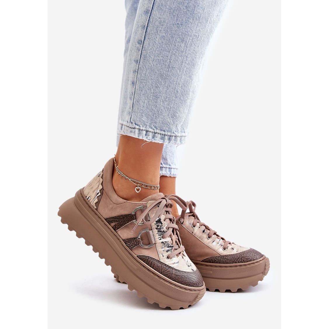 Maciejka Női bőr tornacipő a platformon Maciejka 06562-10 sötétbézs