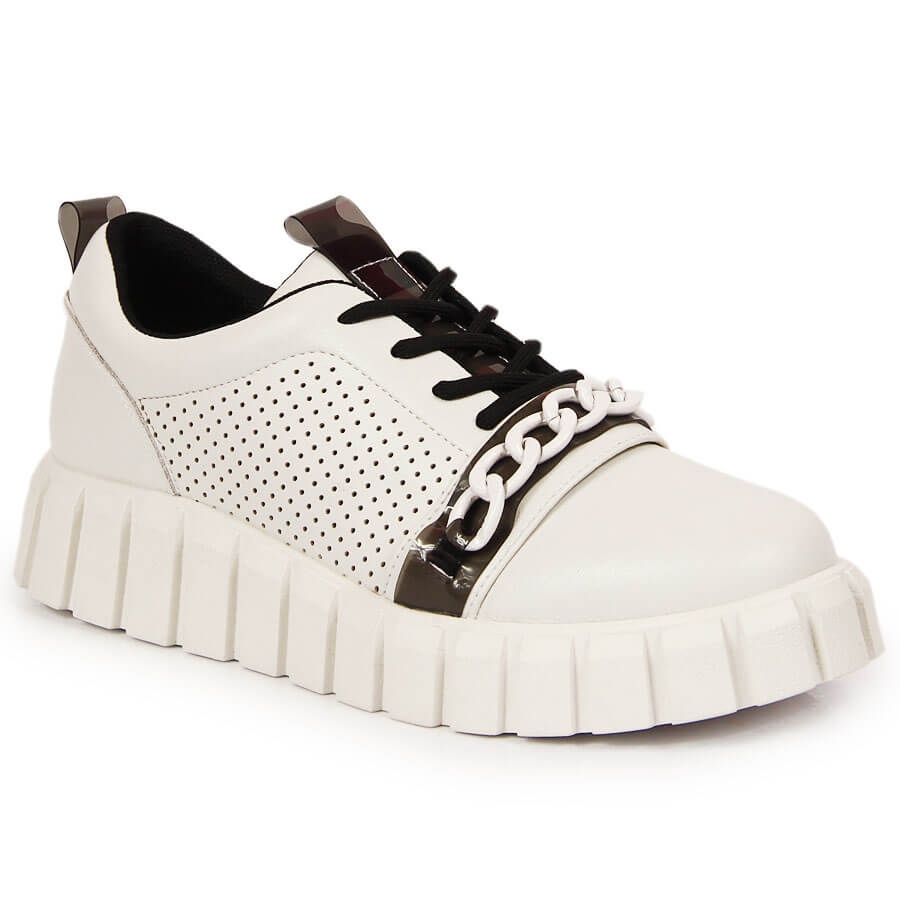 ARTIKER Női bőrcipő a platformon, Artiker lánccal fehér