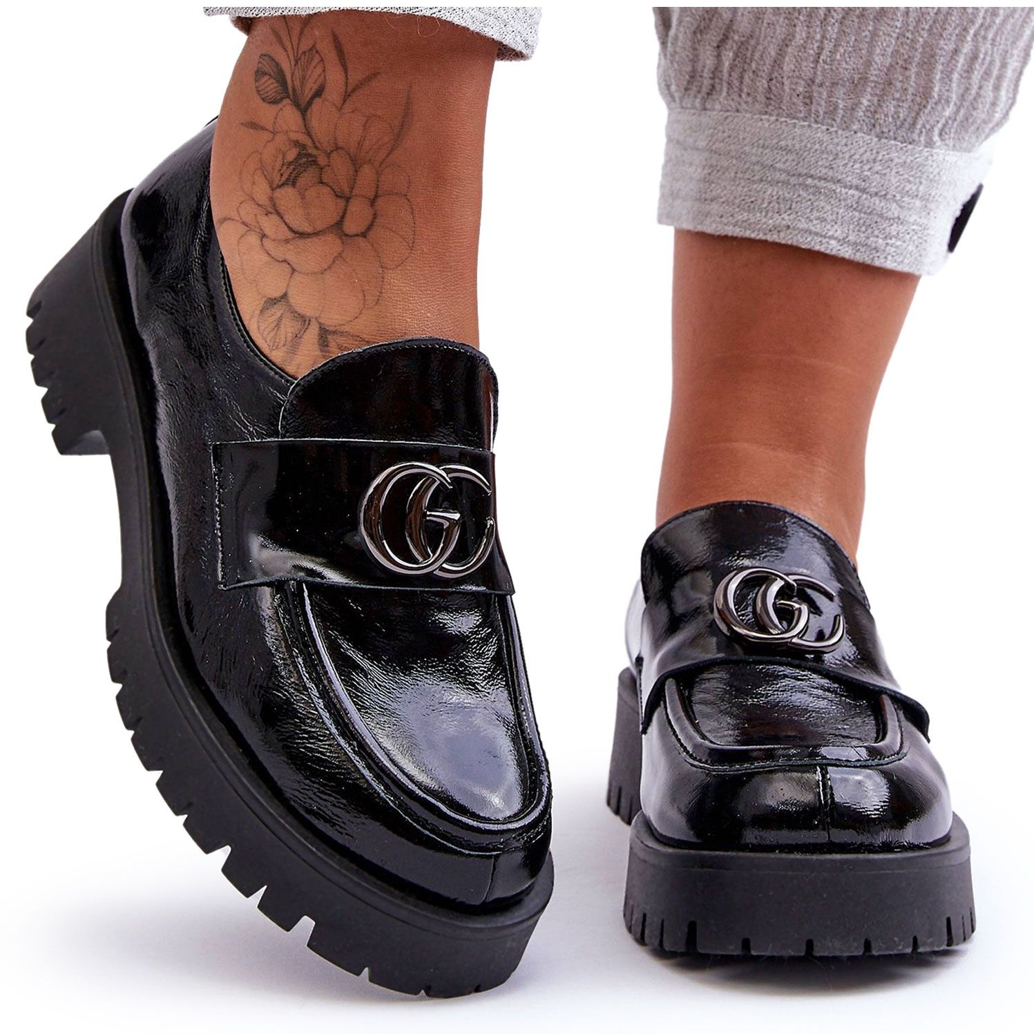 Elegáns női Laura Messi cipő - A Rosefalls modell klasszikus, fekete kivitelben. Teljesen természetes bőrből készül, egy hatalmas platformon és egy stabil, lapos sarokba ágyazva (4 cm magas). A finom strasszok hozzáadása divatos karaktert ad a cipőnek, amelynek köszönhetően nagyszerűek mind a mindennapi és az elegánsabb stílusban.