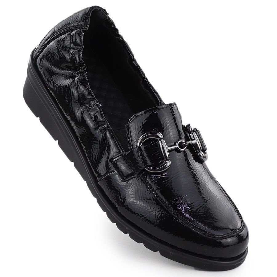 Részletek: Női bőrcipő lakkozott ékeken fekete rieker l5352-00