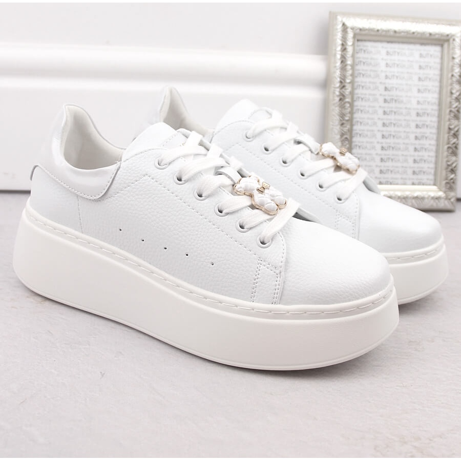 Részletek: Női bőrcipő platformon, mackóval, fehér Vinceza 66641