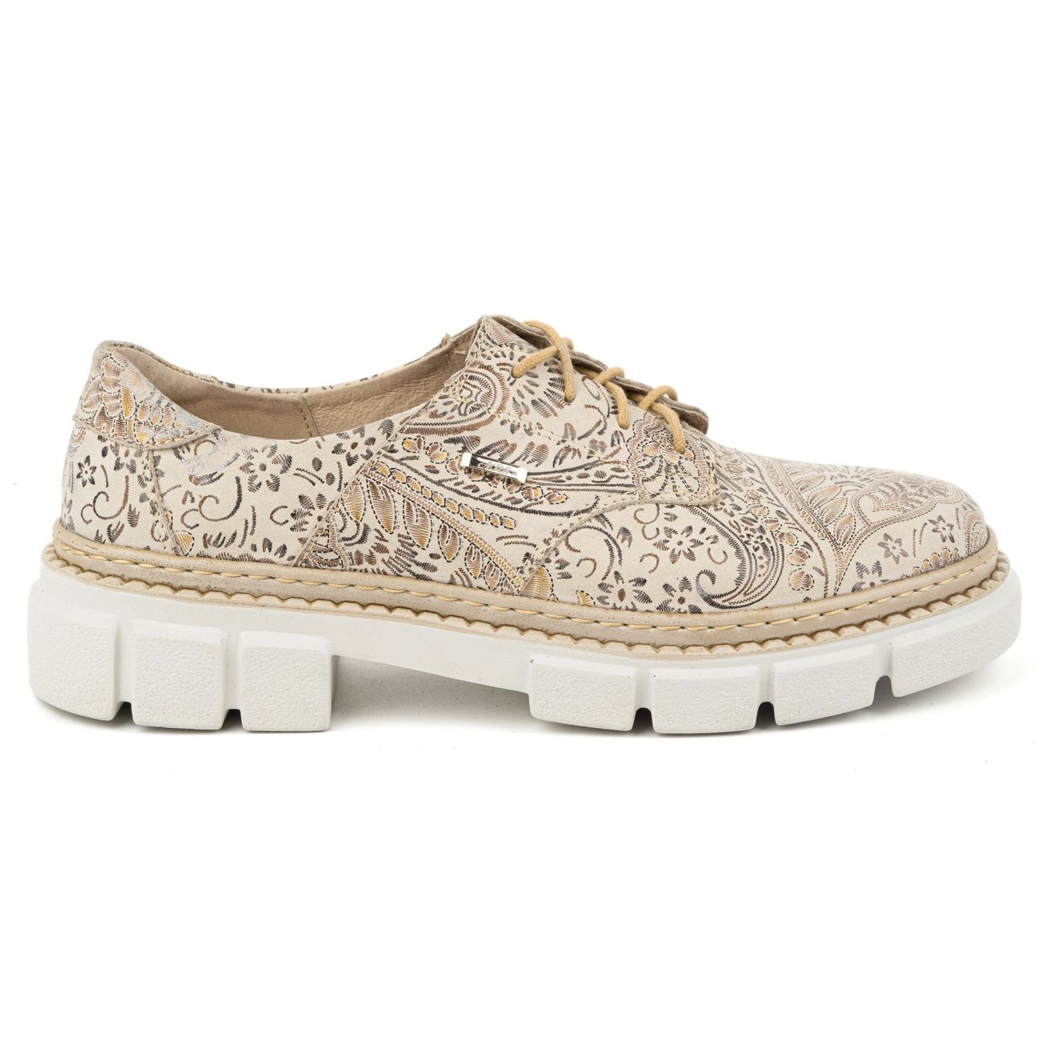 Olivier Olivier Női bőrcipő vastag talppal, virág 1134, bézs