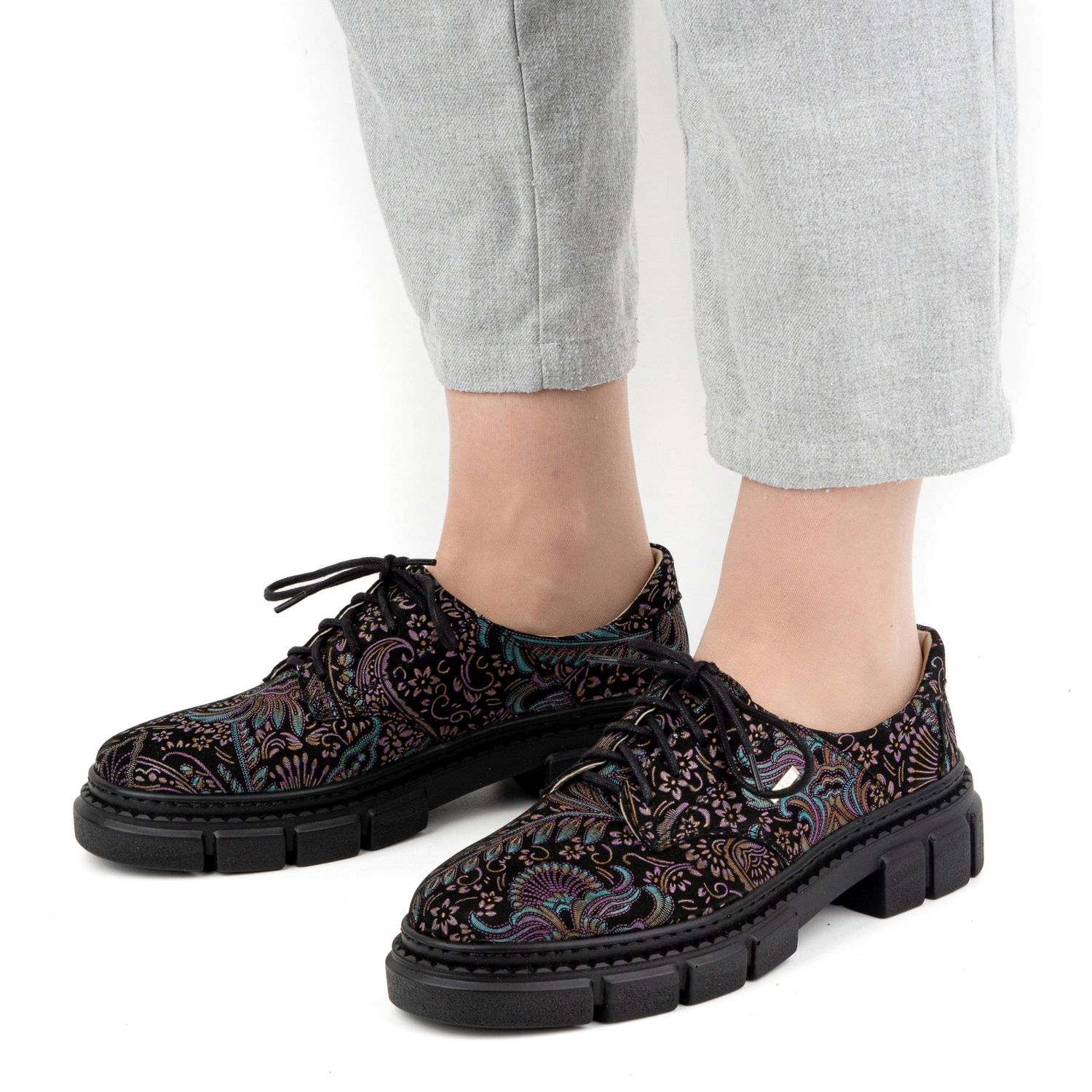 Olivier Olivier Női bőrcipő vastag talppal, virágos 1134, türkiz sokszínű