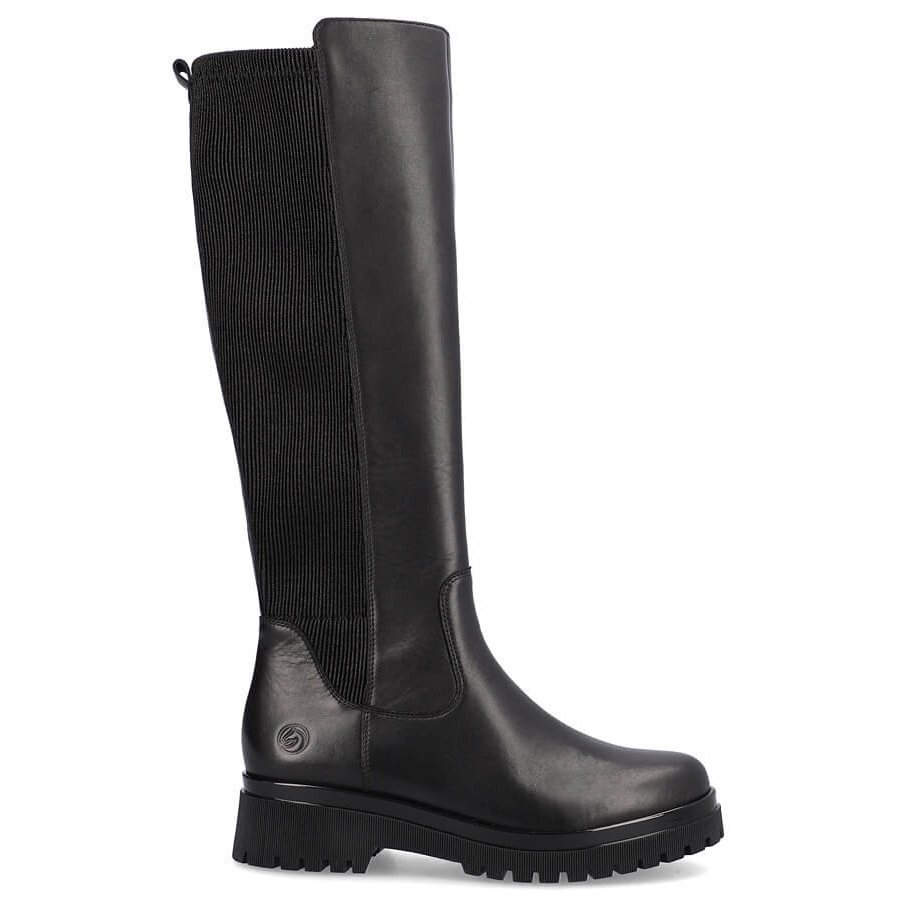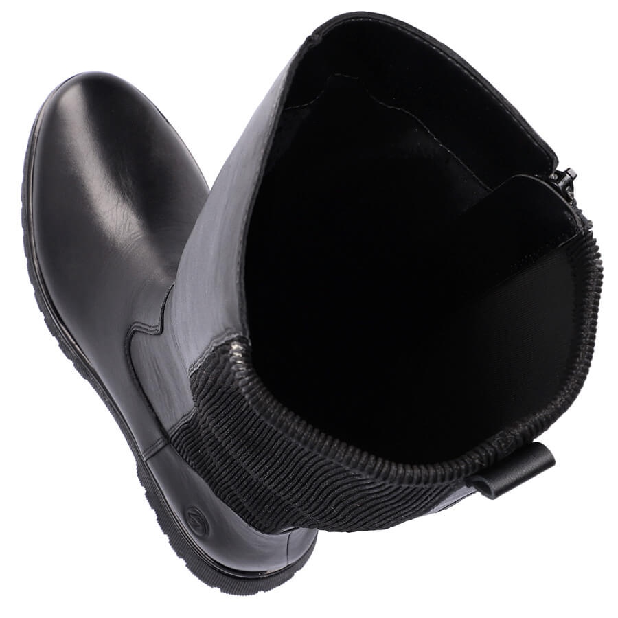 Részletek: Női bőrcsizma elasztikus felsőrésszel, fekete Remonte D1B71-01