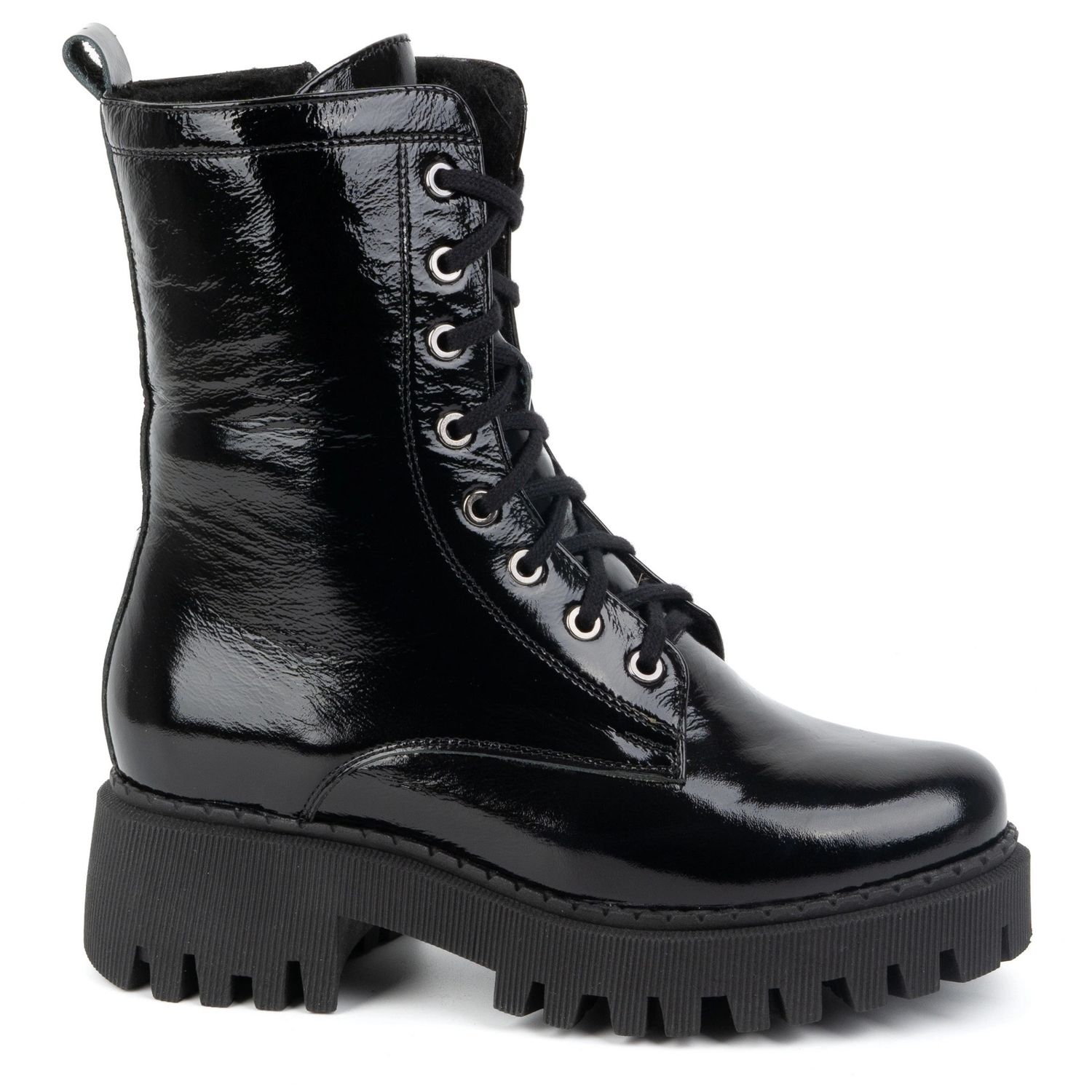 Az Olivier női bőrcsizma szigetelt cipő 401BB fekete lakkban kiváló választás hűvösebb hónapokban. Ezek az elegáns csizma kiváló minőségű természetes bőrből készül, amely nemcsak esztétikát, hanem kényelmet és tartósságot is garantál. A modernista formatervezésük és a szilárd kötés kombinálva karaktert ad nekik, és tökéletesen illeszkedik a lábhoz.