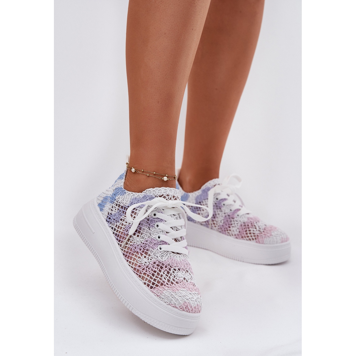 Részletek: Női cipők a platformon egy horgolt felső multicolorral sokszínű