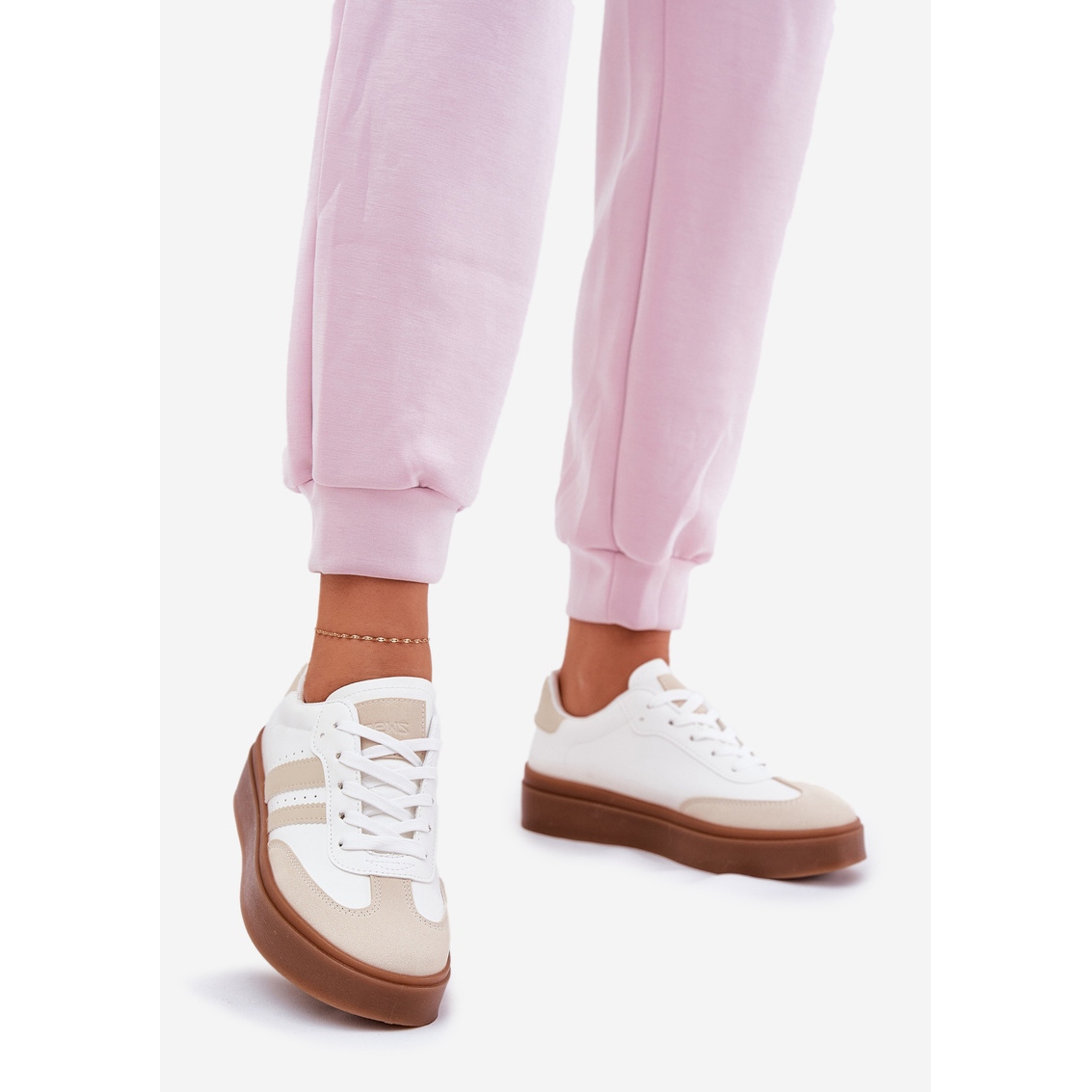 Inna marka Női cipők a platformon, öko bőr bézs és fehér