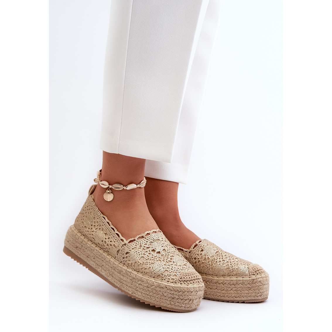 Részletek: Női csipke espadrillák az arany Elarose platformon aranysárga