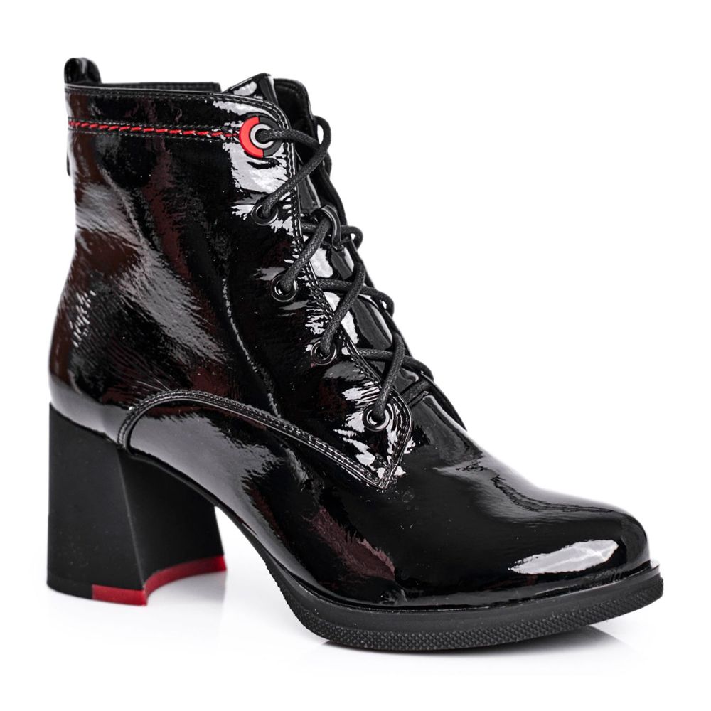 Részletek: S.Barski Női csizma a sarkán lakkozott fekete jobban csinálja