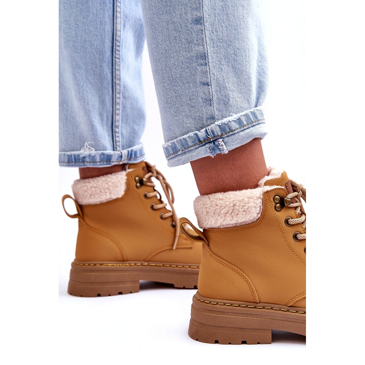 Női túrázó csizma juhbőr kabáttal - teve klasszikus télen