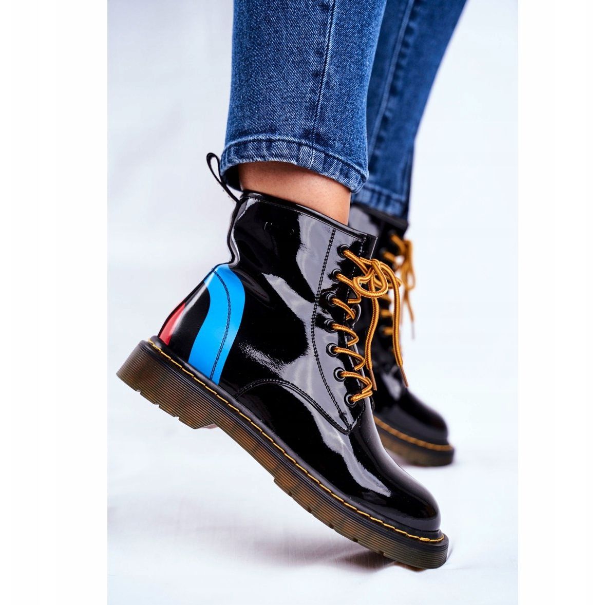 A legjobb minőségű lakkbőrből készült csizmák nemcsak tartósak, hanem elegánsak és szemet gyönyörködtetőek is. A sarok körüli díszes nyomat karaktert kölcsönöz, a talpon és a fűzőkön lévő sárga varrás pedig tökéletesen kontraszt a mélyfekete színnel, szemet gyönyörködtető egységet alkotva.