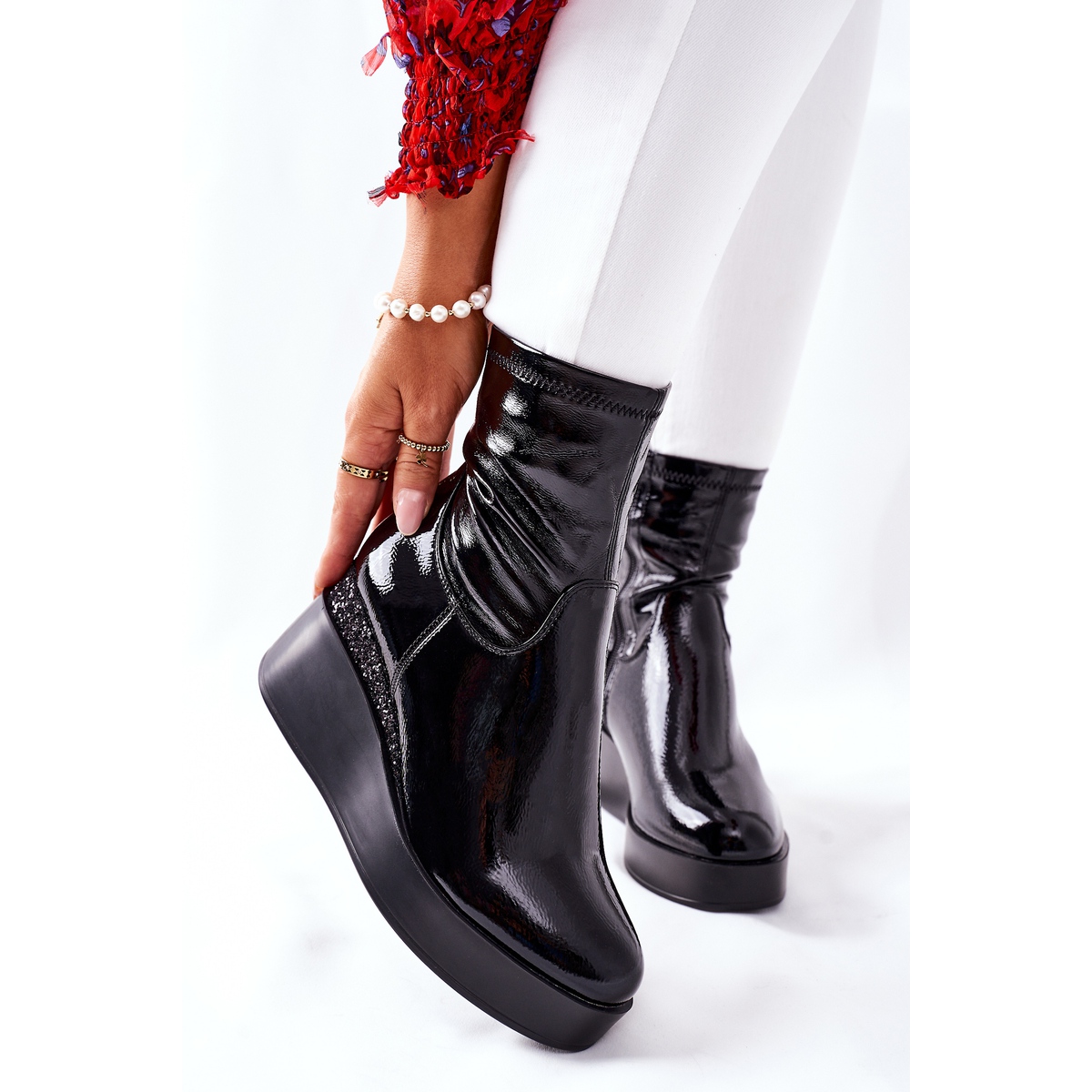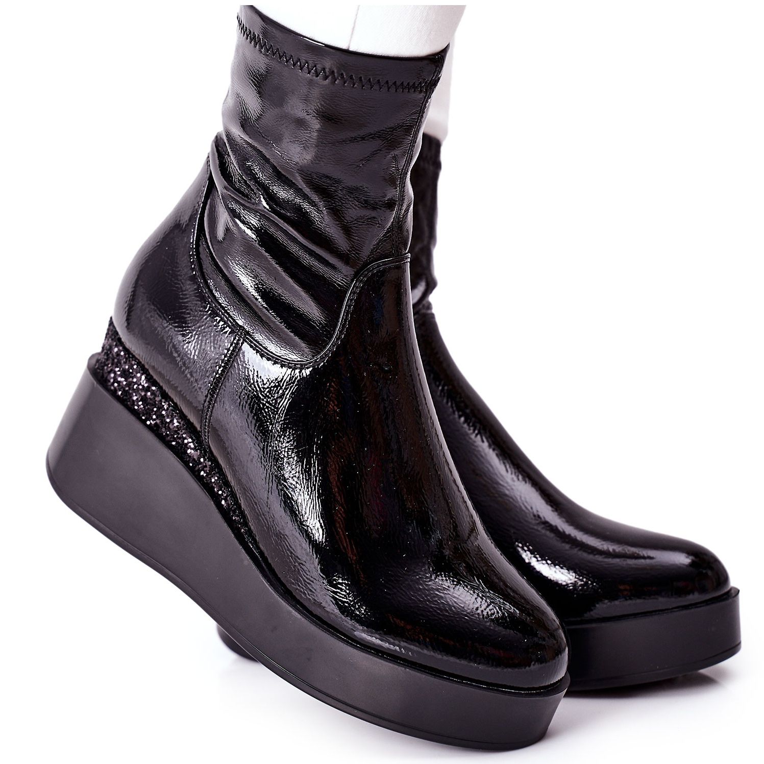 S.Barski S.Barski Női csizma ék lakkozott fekete terápia
