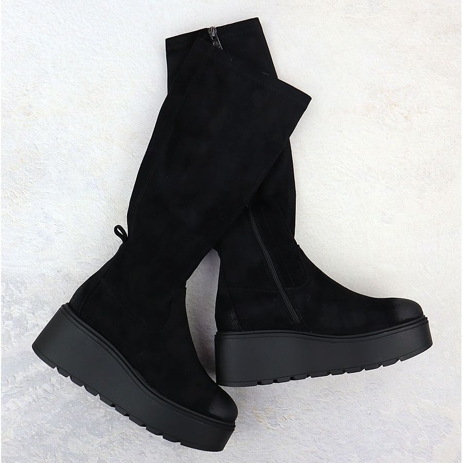 Fedezze fel az eleganciát és a kényelmet a fekete női csizmában a Vincez 58342 ék! Ezek az elegáns cipők tökéletes választás egy modern nő számára, aki a divatot és a kényelmet szeretné ötvözni. A nagy minőségű velúr ökológiai bőrből készült csizmákat rugalmas felsők jellemzik, amely könnyen alkalmazkodik a lábak különböző szakaszaihoz, biztosítva a tökéletes illeszkedést.