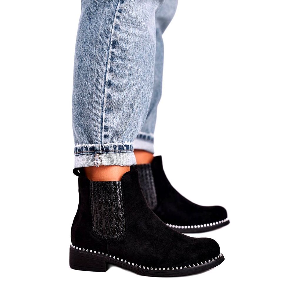 Női Chelsea csizma strasszokkal A Suede Black Meagan nem csak divatos kiegészítő, de mindenekelőtt praktikus választás minden nő számára, aki a stílust a kényelemmel szeretné ötvözni. Ha ezt a modellt választja, sokoldalú cipőt kap, amely tökéletes kiegészítője lesz bármilyen stílusnak.