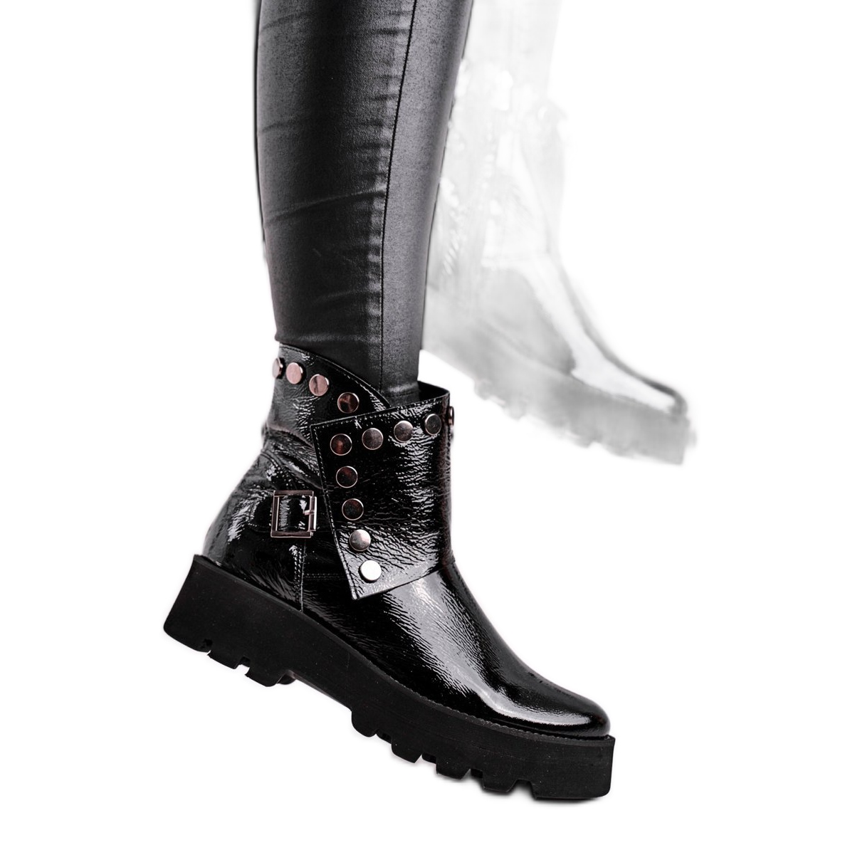 Részletek: Exquisite Női csizma lakkozott bőr fekete, finom 1199