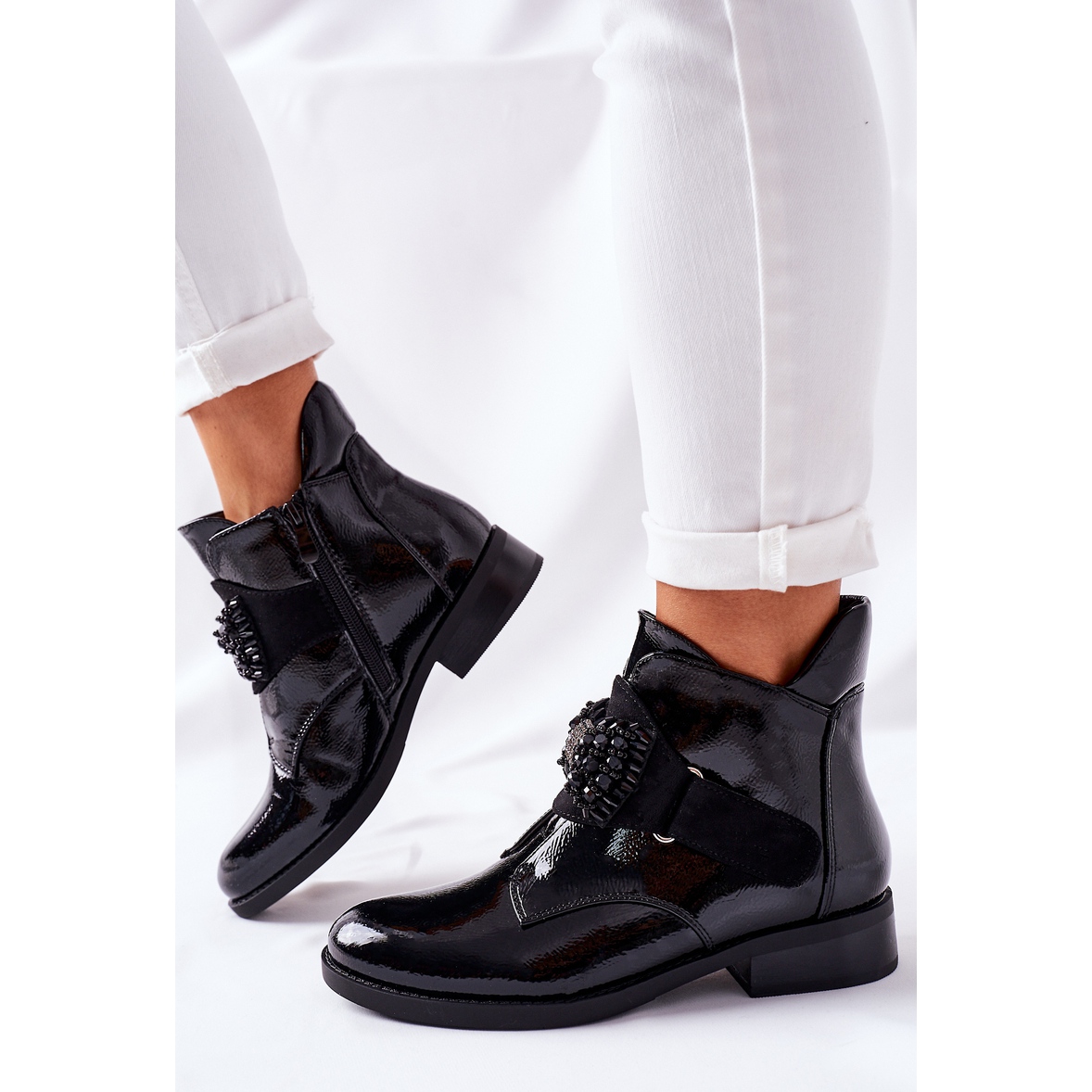 Részletek: S.Barski Női csizma lakkozott fekete Schuler kristályokkal