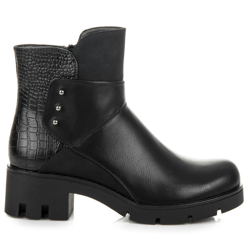 Csodálatos, vastag, 5 cm magas, mély futófelülettel tervezett sarkuk minden lépésnél stabilitást garantál, felülettől függetlenül. Ezenkívül a krokodilbőrt imitáló lenyűgöző sarok egyedi karaktert kölcsönöz nekik, felhívva a körülöttük lévők figyelmét. A csizmának kerek orr és merevített sarka van, ami további viselési kényelmet biztosít.