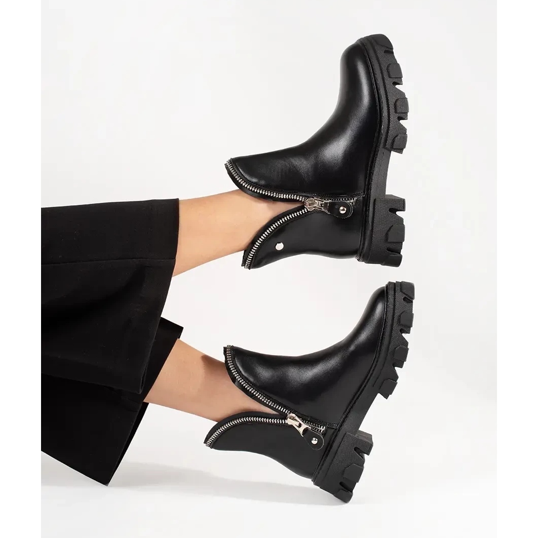 Fedezze fel az eleganciát és a kényelmet egyetlen modellben - fekete Shelovet női bokacsizma vastag platformon. Ez a stílusos bokacsizma tökéletesen illeszkedik a hétköznapi stílushoz, így tökéletes választás a mindennapi kirándulásokhoz az őszi/téli szezonban.