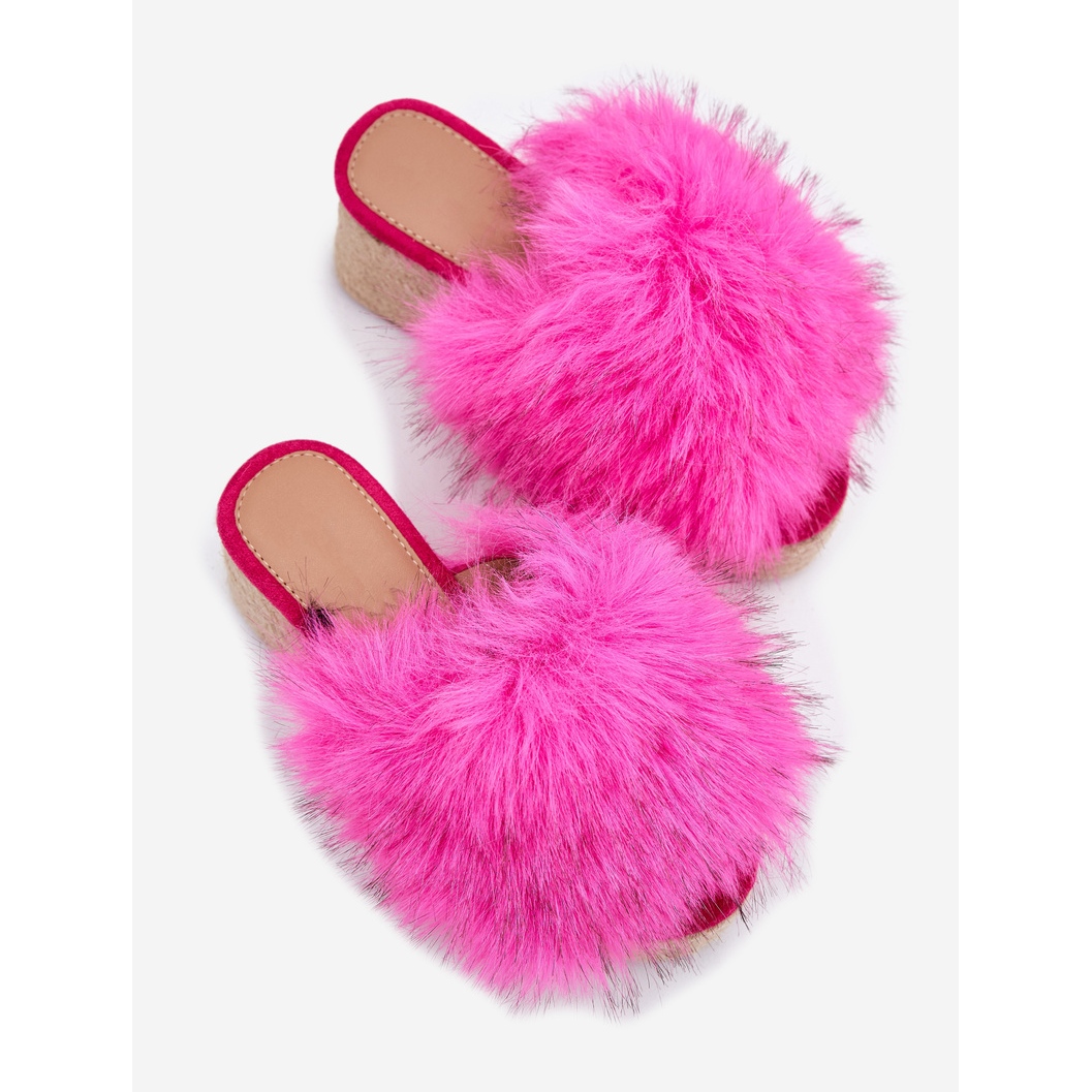 Fedezze fel a nyári varázst a Fuchsia szőrös női ékeknek köszönhetően! Ezek a divatos papucsok tökéletes választás a meleg napokhoz, amelyek örömmel szolgálnak a tervezésükkel és a viselkedés kényelmével. A 8,5 cm magasságú ékre állítva, fonott platformon, könnyedséget adnak bármilyen stilizáláshoz, így észrevehetőek a tömegben.