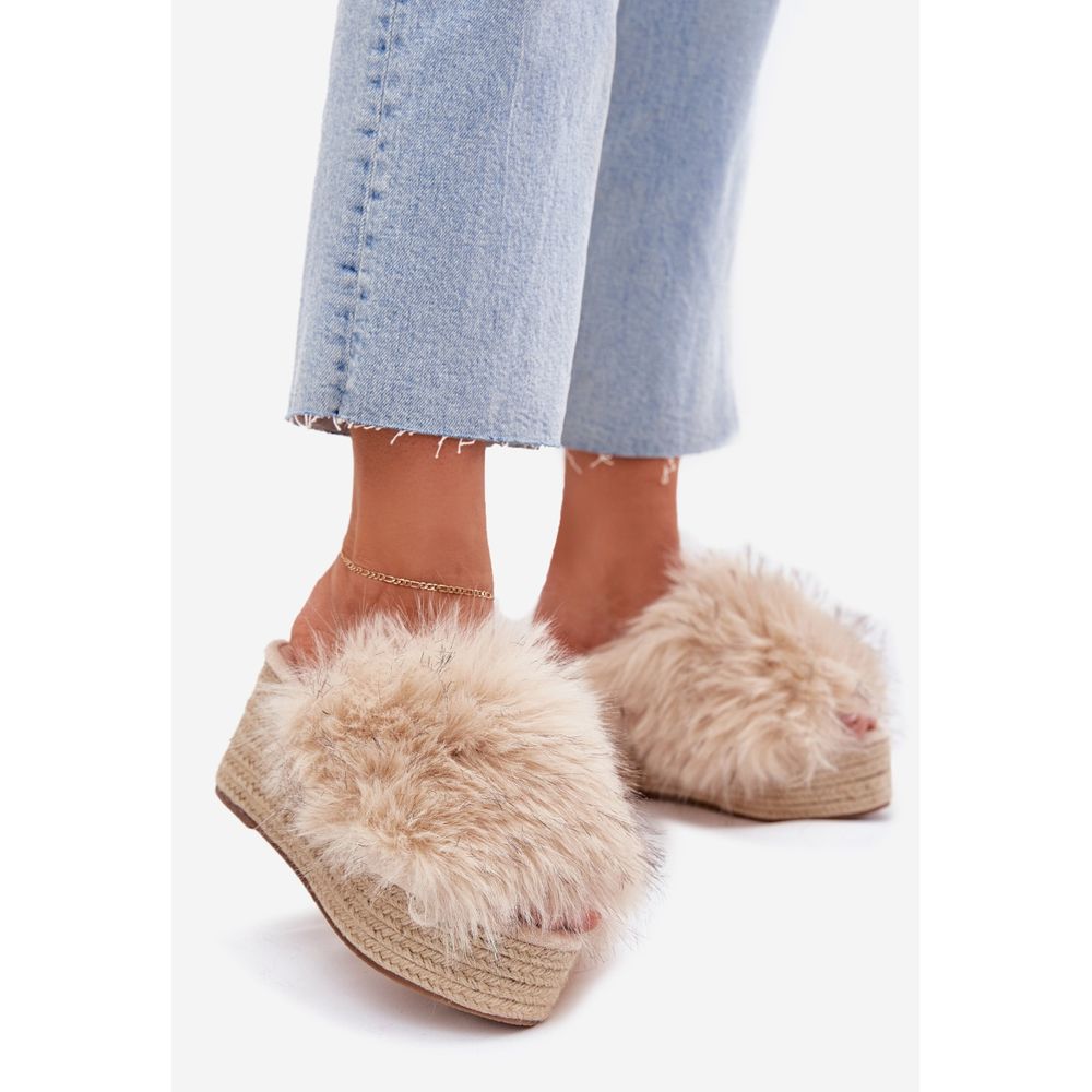 Műanyagból készült, ökológiai bőr betéttel, a papucs nemcsak esztétikai, hanem praktikus is. A szőr egy kis luxust ad nekik, és rendkívül kellemesvé teszi őket.