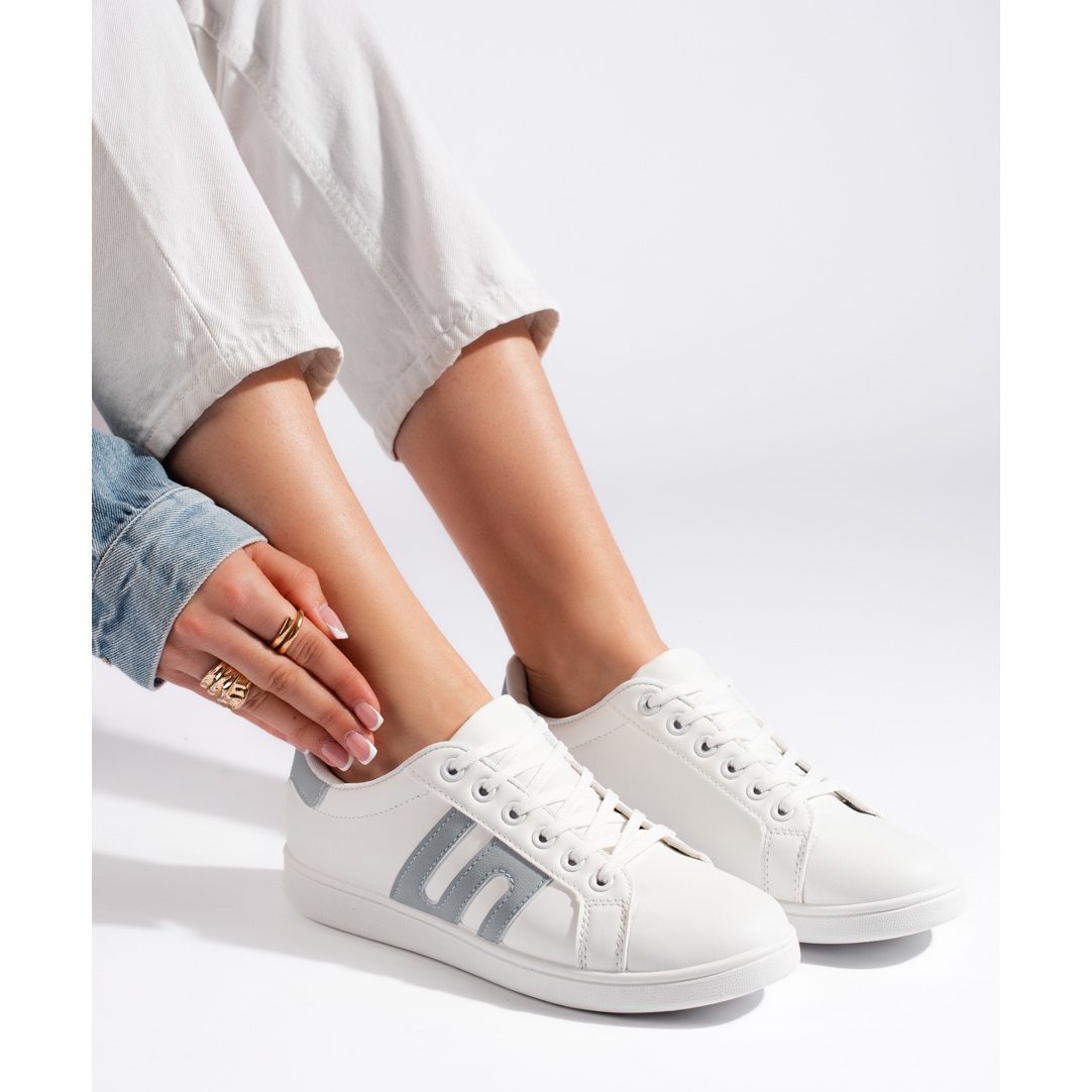 A mindennapi használatra tervezett cipők tökéletesek az alkalmi és sportos stílushoz egyaránt. Univerzális fehér színük kék ékezetekkel frissességet és energiát kölcsönöz minden ruhatárnak.