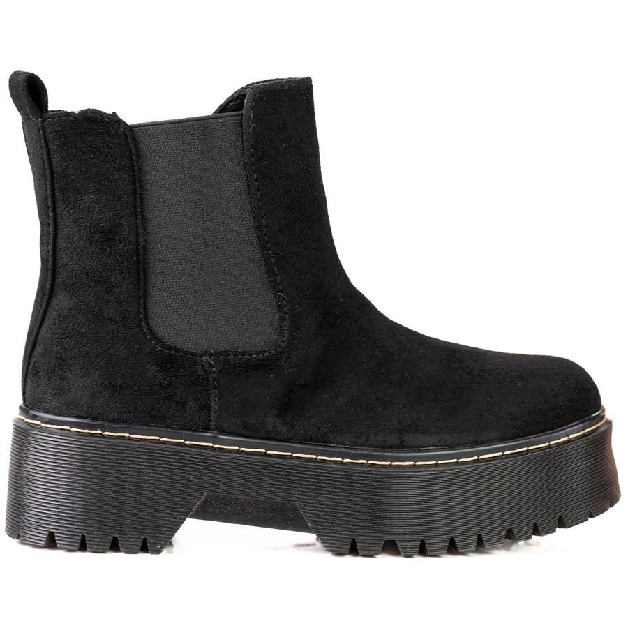 Részletek: Női fekete Chelsea csizma a Shelovet platformon, környezetbarát velúrból