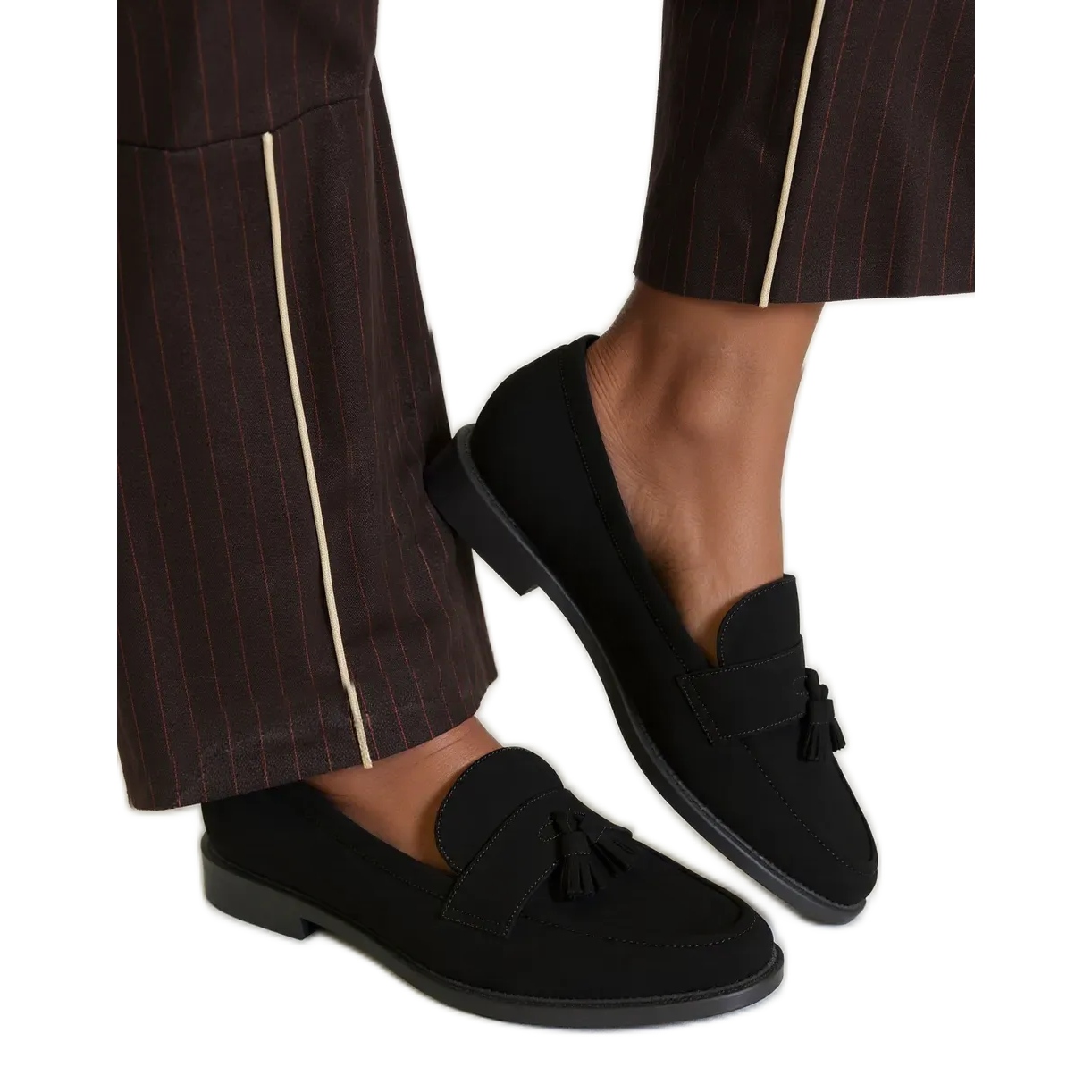A lapos sarokuk maximális kényelmet nyújt a mindennapi használat során. Tökéletes az irodához és a barátokkal való találkozókhoz, a fekete cipők tökéletesen keverednek mind a farmer, mind a ruhákhoz. A finom varrás és a dekoratív rojtok egyedi karaktert adnak nekik, és a kerek orr még hosszabb használat során is kényelmet nyújt.