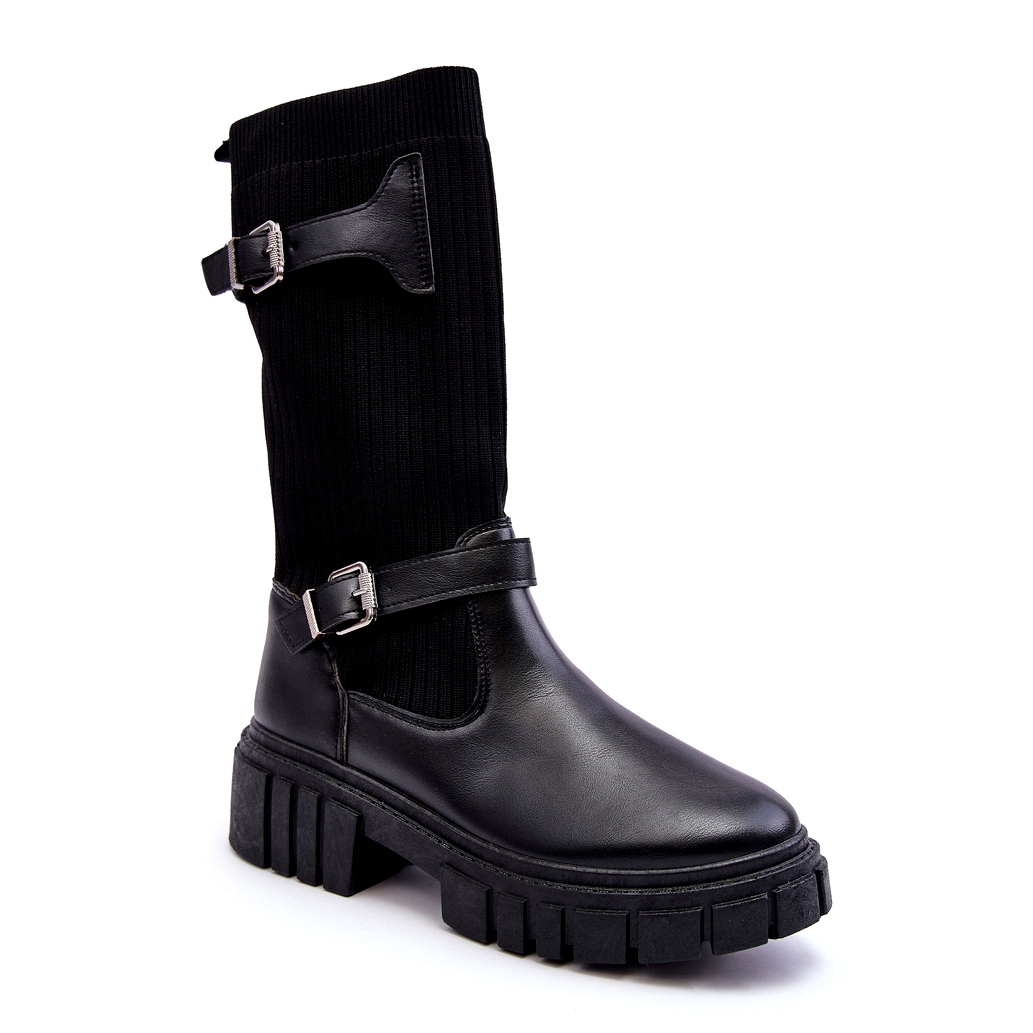 Női csizma zoknival - fekete