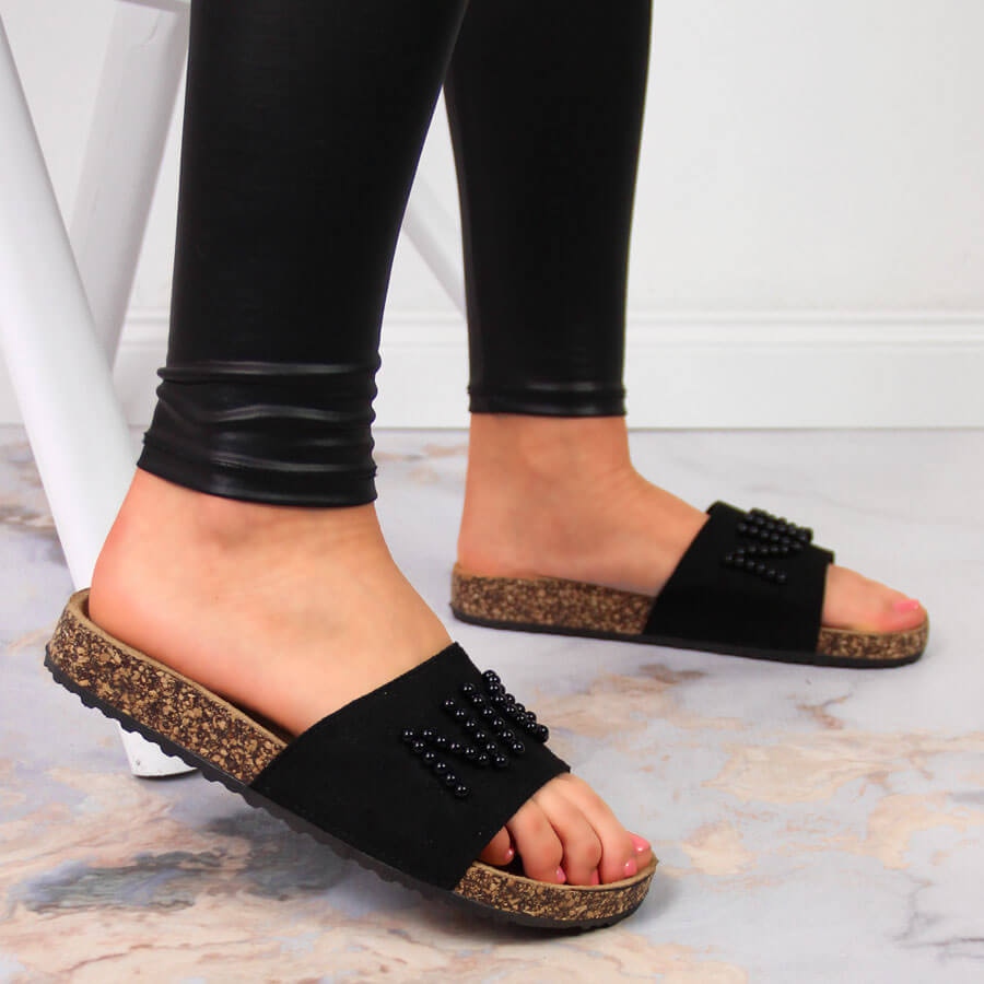 Ezeket a fekete eVento cipős papucsokat olyan további részletek is megkülönböztetik, mint például a gyöngy díszítőelemek, amelyek egyedi karaktert kölcsönöznek nekik, és remek kiegészítői a nyári ruháknak. Tökéletesen passzolnak légies ruhákhoz és hétköznapi rövidnadrágokhoz vagy nadrágokhoz egyaránt.