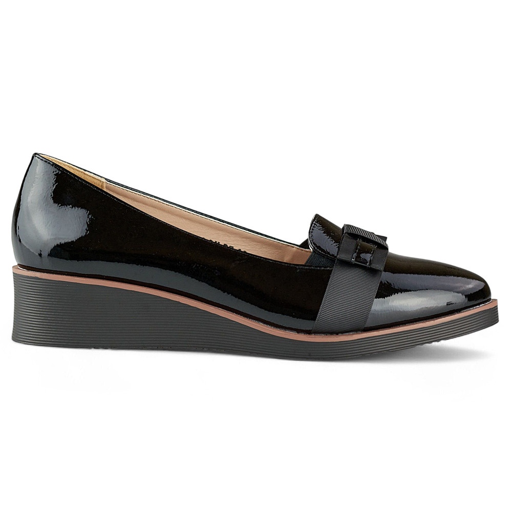 Részletek: Női fekete lakkcipő alacsony ékkel