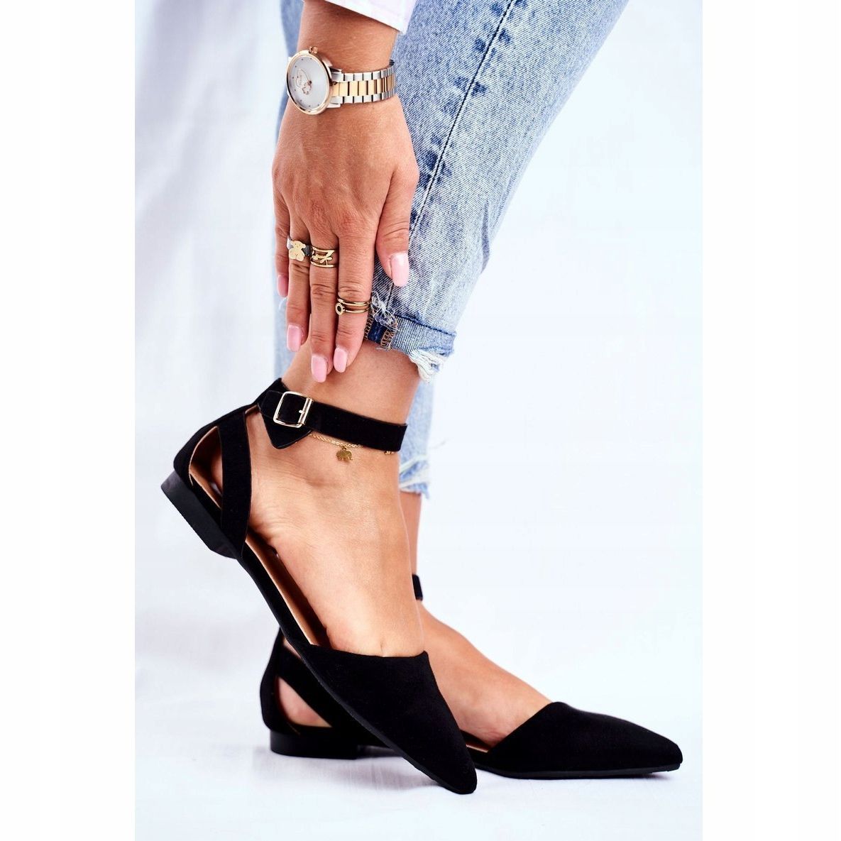 A balettlaposokat egy gyönyörű részlet különbözteti meg - a láb mindkét oldalán található két pánt tökéletesen tartja a sarkot, miközben finom varázst ad a lábbelinek. Az 1,5 cm-es lapos sarok rendkívül kényelmessé teszi őket, és tökéletes mindennapi viseletre, anélkül, hogy aggódnának a lábfáradtság miatt.