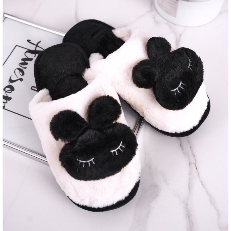 Részletek: Női fekete nyúl szőrme papucs fehér