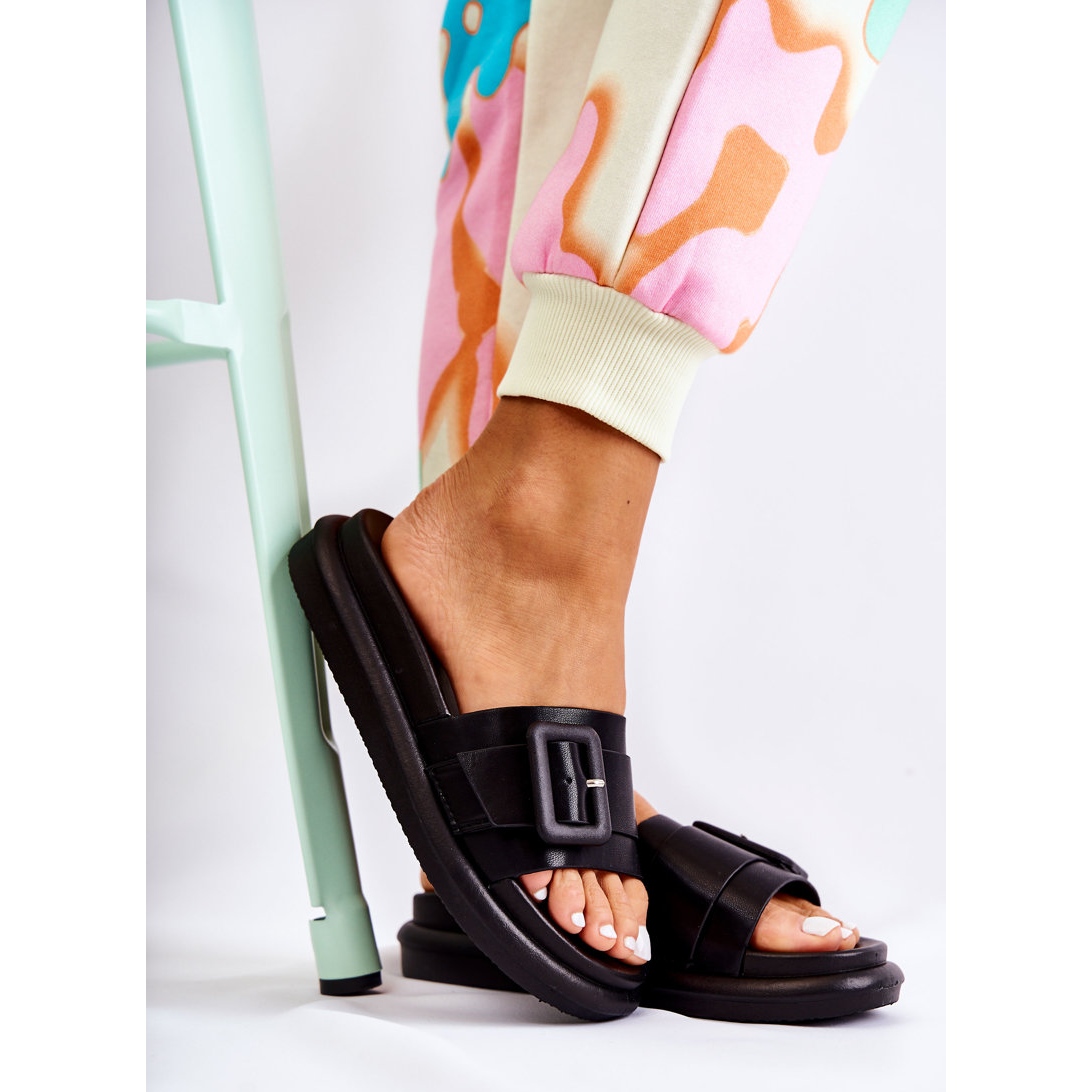 Fedezze fel az eleganciát és a kényelmet a nyári napokon a Devia fekete csatos női papucsaival. Ezek a klasszikus és divatos, kiváló minőségű ökobőrből készült papucsok kiváló választás azoknak a nőknek, akik stílusos lábbelit keresnek, amely nem mond fel a kényelemről.