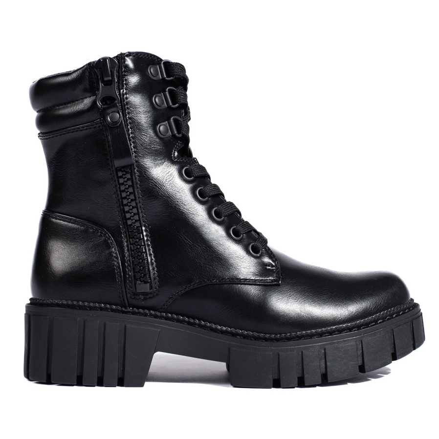 Elegáns és ellenálló fekete munkavállalók - az alkalmi és a rock stílus tökéletes kombinációja. Organic bőrből, melegítéssel és stabil talppal, futófelülettel, hűvösebb napokon fognak dolgozni, a karaktert hozzáadva a mindennapi és kifejezőbb stilizációkhoz.