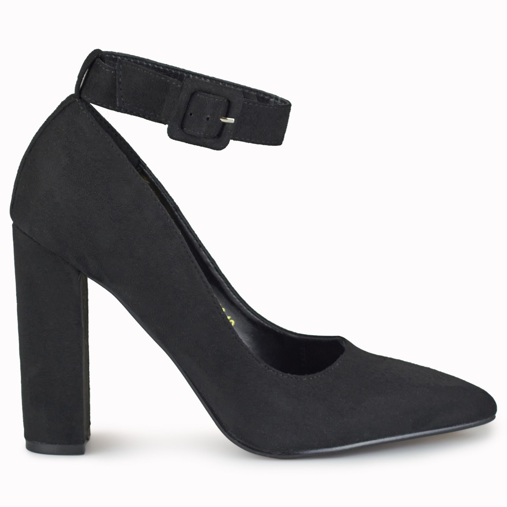Részletek: Női fekete pumpák a bokánál rögzítve