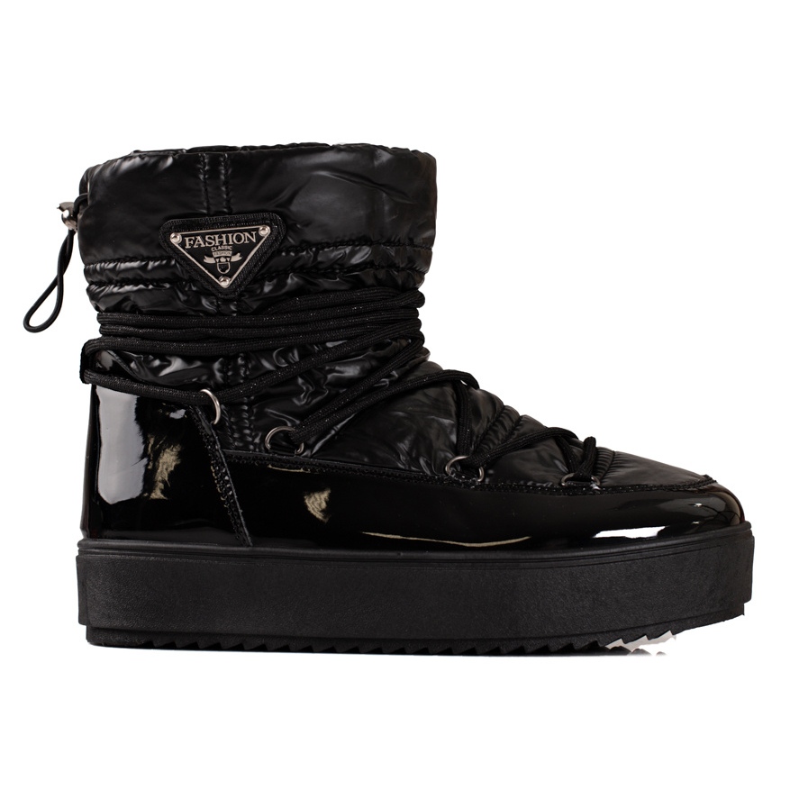 A SHELOVET fekete női hócsizma tökéletes választás a hideg napokra. Nemcsak kiváló védelmet nyújtanak a hideg ellen, hanem stílusos megjelenést is, amely tökéletesen illeszkedik bármilyen stílus alkalmi karakteréhez. Kiváló minőségű anyagokból készült, felső részük fényes, lakkozott ökobőrből készült, ami elegáns megjelenést kölcsönöz nekik.